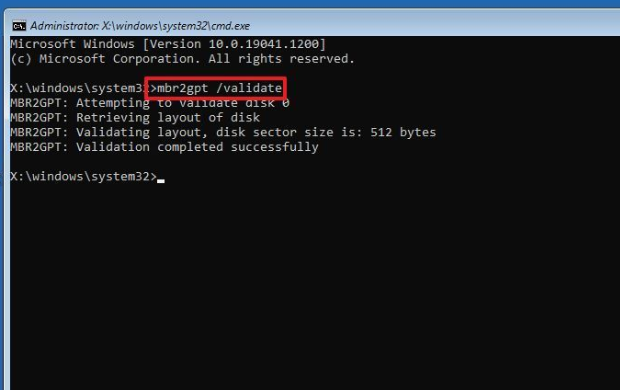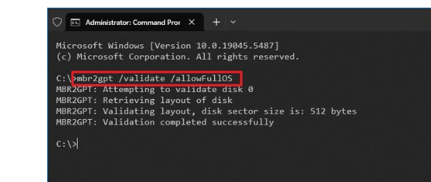 بهذا الأمر ستتم عملية التحويل بشكل مباشر عبر أداة MBR2GPT دون الحاجة لإعادة تثبيت نظام التشغيل.